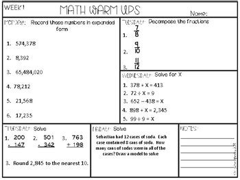 Read Online daily math warm ups 4th grade Paperback